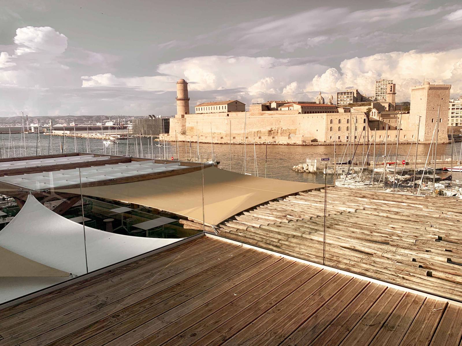 Notre établissement, idéalement situé à deux pas du Vieux Port et du Pharo à Marseille, met à votre disposition et à celle de vos convives une salle de restauration au design unique, style le Corbusier, avec vue imprenable sur l'entrée du Vieux-Port de Marseille ainsi qu'un Rooftop unique avec vue exceptionnelle sur le Mucem et l'entrée du Vieux-Port.