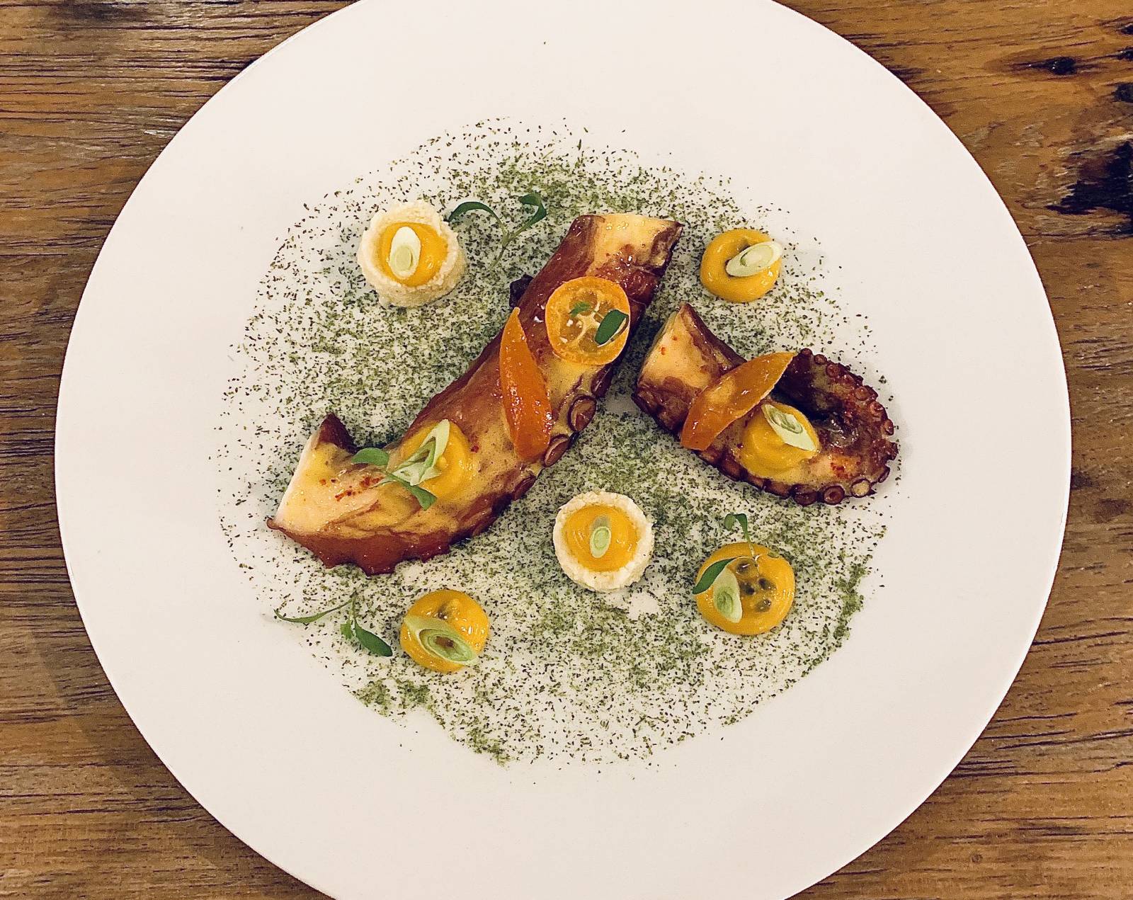 Poulpe de roche à la passion, marmelade de Kumquat
