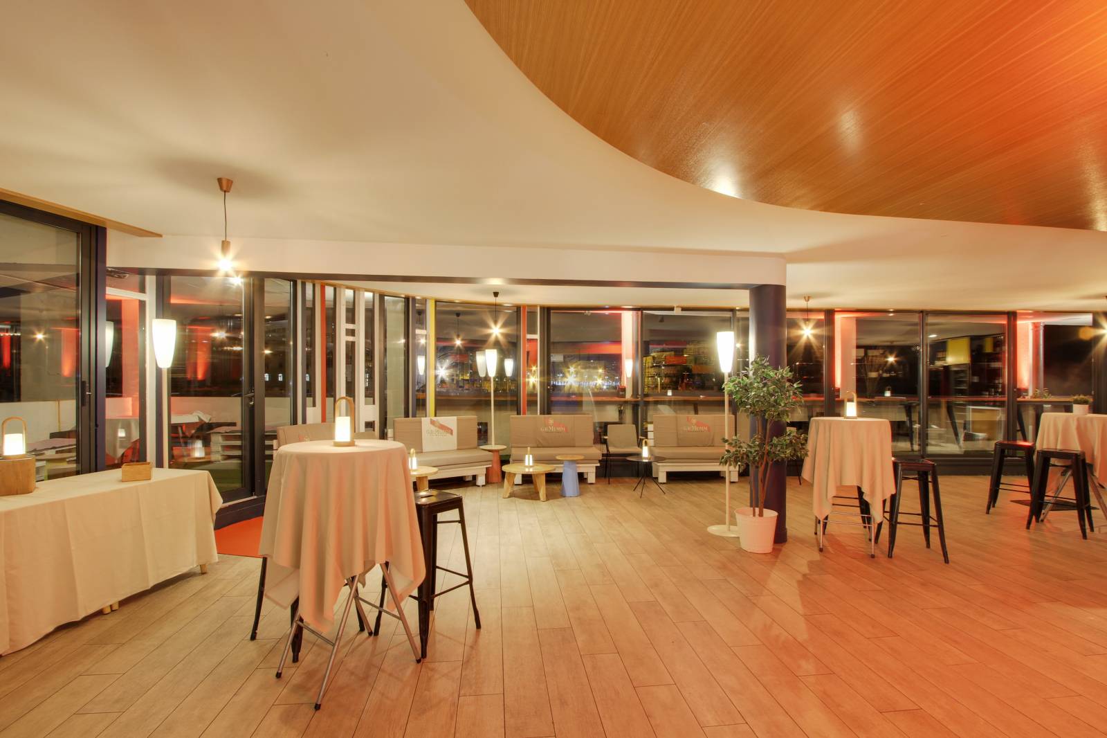 Surface : 120m2Repas :Cocktail dinatoire ou déjeunatoire : 120 personnesRepas assis : 90 personnesSéminaire : Format U : 40 personnesThéâtre : 80 personnes Prestations techniques :Vidéo projecteurMicroSonorisationPetit déjeuner